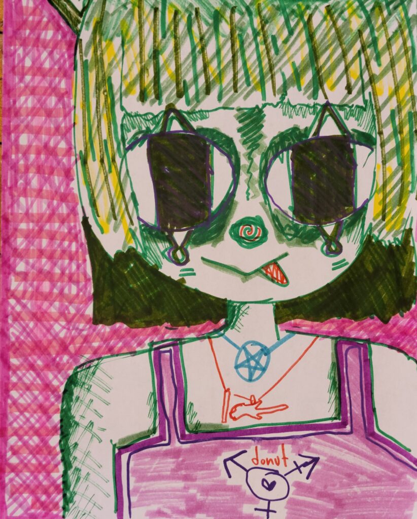 Hellooo!! I’m Angel. I’m currently in school at MassArt I am dual majoring in Interrelated Media (SIM) and Painting. I really like clowns and aliens and raccoons.